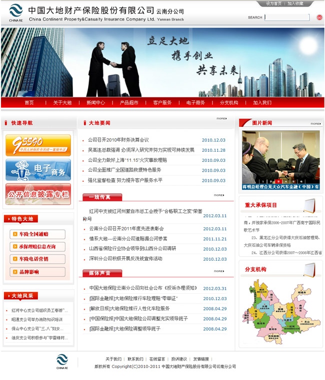 作为中再集团公司旗下唯一的直保财险公司,中国大地保险在初创期实现了跨越式发展,创造了令业界刮目相看的“大地现象”。公司已设立分公司34家、营业部1家,5个层级的机构总数超过1800家,全国性服务网络已经形成。美国纽约代表处顺利开业。保费规模从2004年的15亿元到2007年突破100亿元,市场排位从12位上升到第5位。