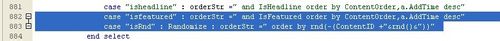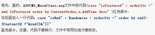 在后面加入一行代码:case "isRnd" : Randomize : orderStr =" order by rnd(-(ContentID +"&rnd()&"))" 加粗字体部分(文件中有两处要添加)。
