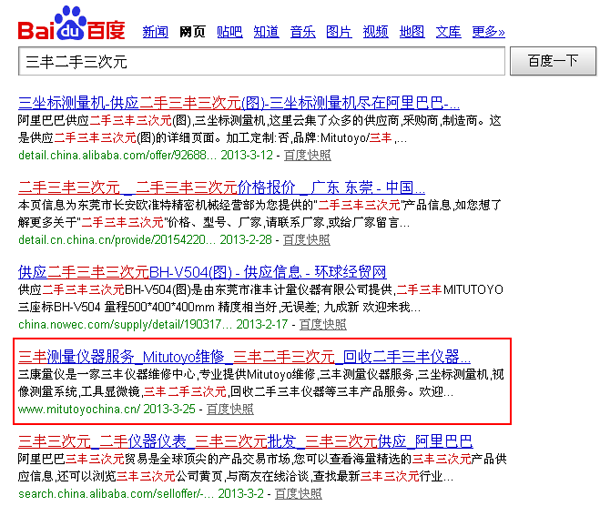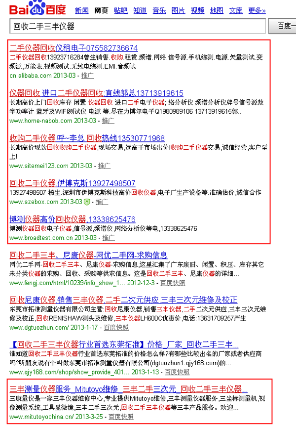 回收二手三丰仪器 百度首页,前面很多做推广的