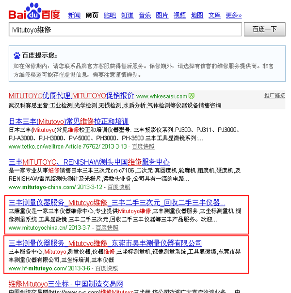 Mitutoyo维修 百度第四,第五也是我们的客户